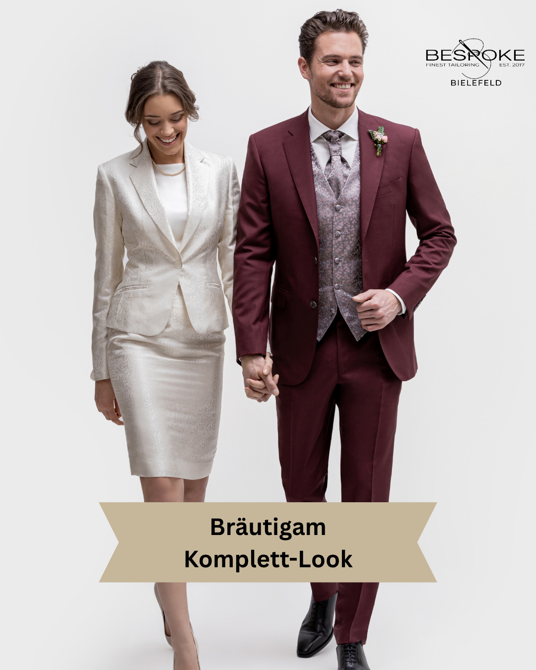 Erleben Sie Ihren Hochzeitstag in vollendeter Eleganz mit dem exklusiven Hochzeitspaket von Bespoke Tailoring Bielefeld. Freuen Sie sich auf einen zweiteiligen Maßanzug, ein individuell gefertigtes Maßhemd, eine stilvolle Fliege, ein edles Einstecktuch sowie handgefertigte Schuhe und den passenden Gürtel – alles zu einem attraktiven Vorteilspreis.